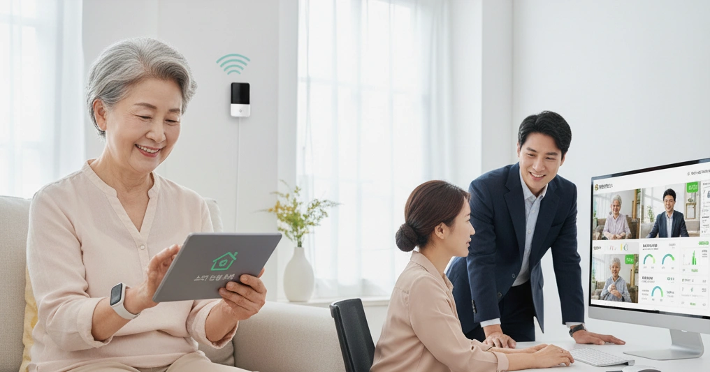사회복지기관과 서비스 기업이 원격 케어 및 관제를 할 수 있도록 제공합니다.